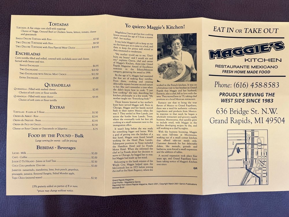 Maggie's Kitchen, a hub for authentic Mexican cuisine in Grand Rapids, MI, offers a diverse menu of Almuerzos, Botanas, and Bebidas. The breakfast options such as Huevos Rancheros and Breakfast Burritos are highly recommended by satisfied customers. With a Latinx-owned and women-owned establishment, Maggie's Kitchen prides itself on excellent service and a comfortable atmosphere. Not only does the menu cater to meat lovers with barbacoa tacos but it also provides ample vegetarian options. Customers rave about the flavorful dishes like enchiladas and hearty breakfast burritos. The restaurant also offers a variety of beverages, including Coca Cola products and juices. Maggie's Kitchen is a must-visit for those seeking a taste of homemade Mexican food and a welcoming dining experience.